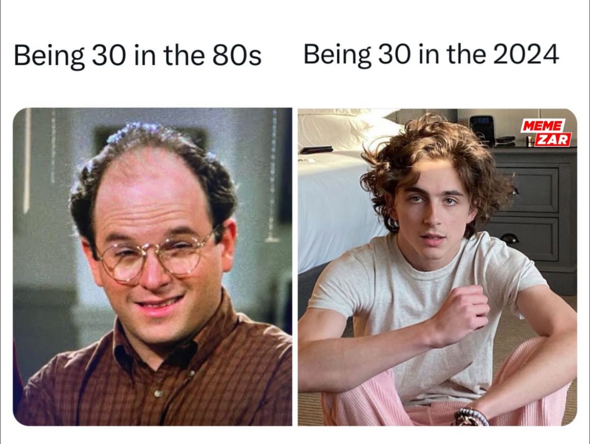But, speaking broadly, we find it quite difficult to tell how old people are and overindex on cues that don’t change throughout adulthood like big eyes or height. I think this is, in no small part, because we look much younger and more attractive than people of previous generations. Provided you’re successfully combatting wrinkles, grey hairs, and weight gain, how old you look will depend mostly on how you dress and carry yourself.